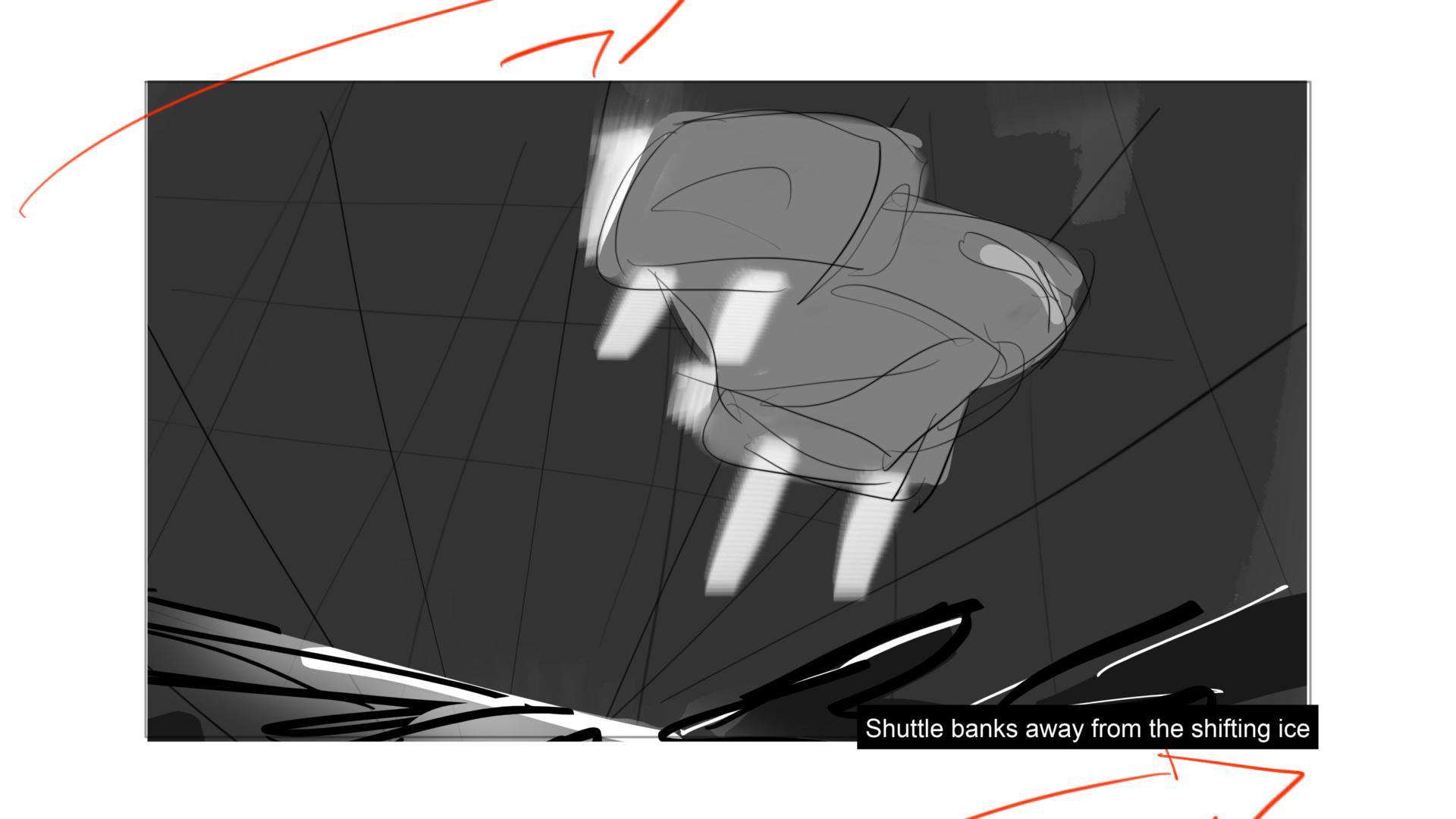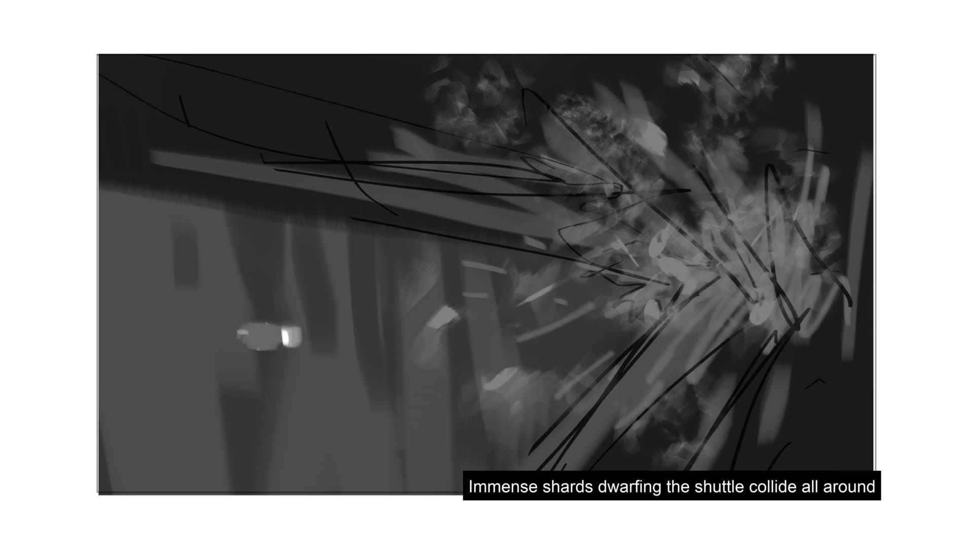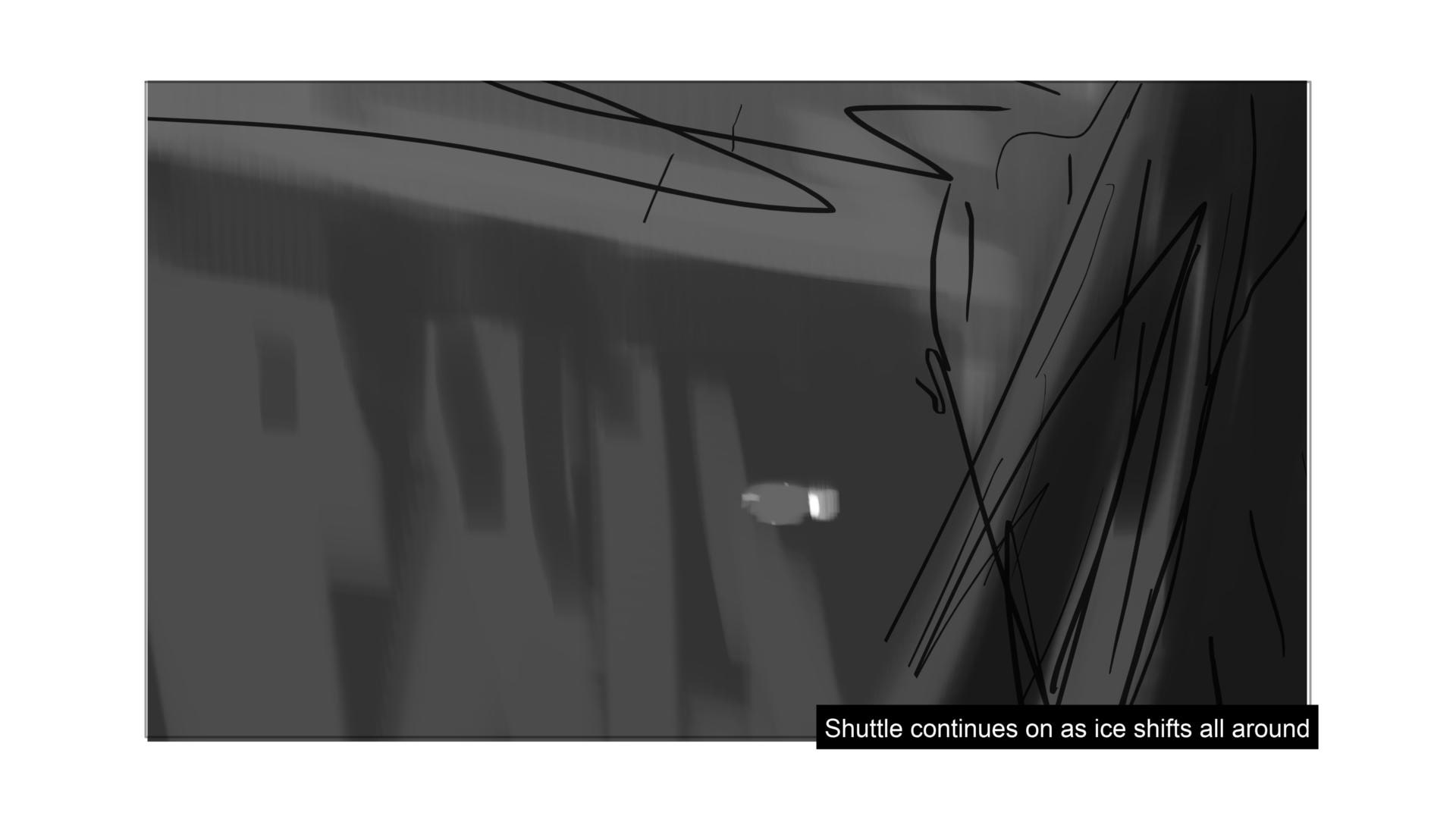 Sci-Fi project. In this scene, we follow a space shuttle cautiously navigating its way into a frozen ice field.